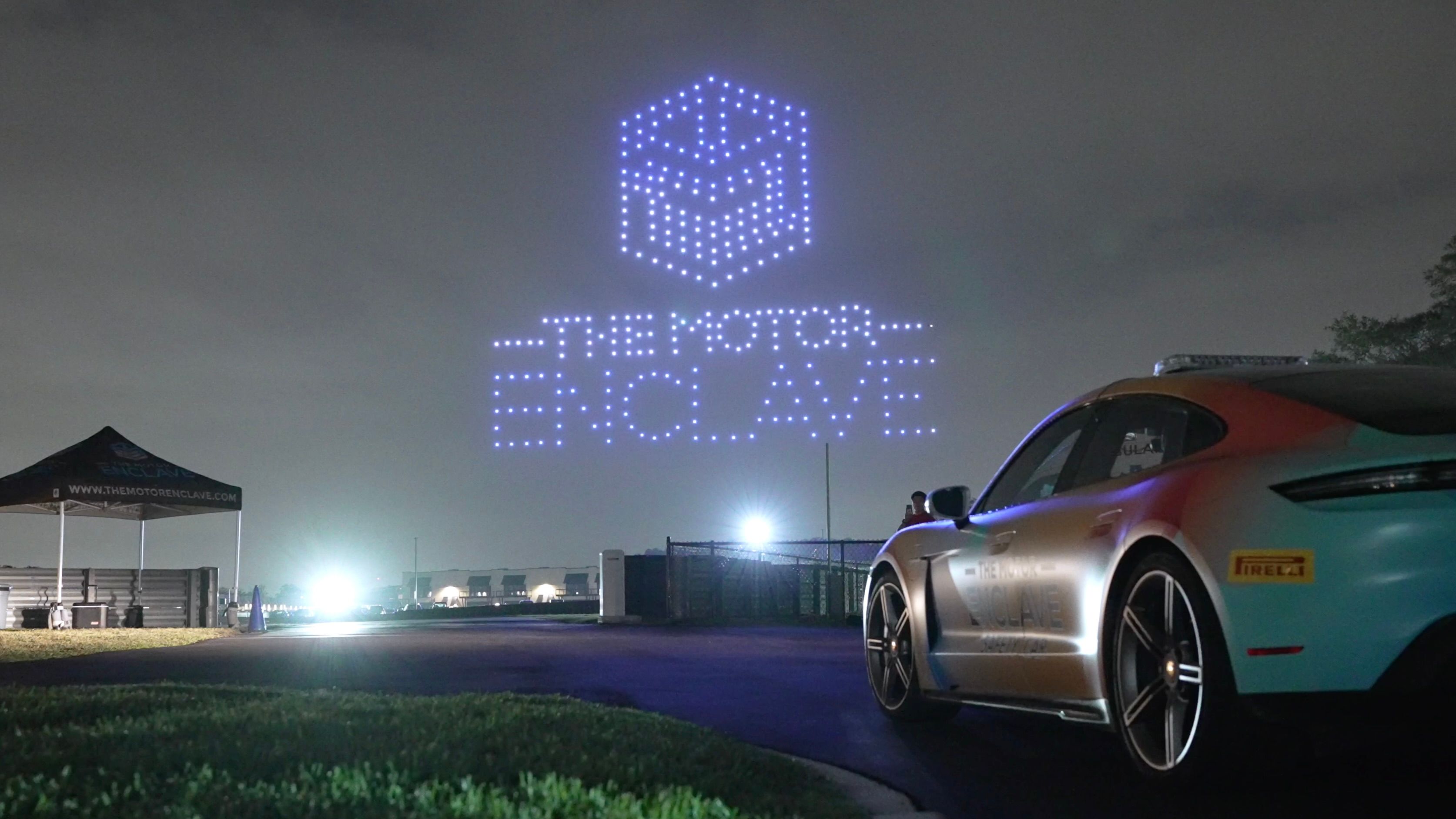 We flew a 300 drone light show for the grand opening of Motor Enclave, built entirely around car culture and the racetrack setting. The show featured custom automotive and racing-inspired formations, capped off with a ribbon-cutting moment, scissors slicing through a floating ribbon in the sky to officially mark the opening. A sharp, intentional way to launch a venue designed for speed, precision, and performance.
